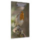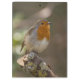 Un Robin européen (rubecula d'Erithacus) se tenant sur une branche d'arbre cassée couverte dans les lichens.