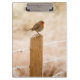 Design présente une photo d'un bel oiseau rouge robin assis sur un poteau.