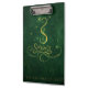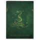 Un sceau doré brille au cœur d'un motif vert profond, entouré d'étoiles, de volutes et de diagrammes mystiques.