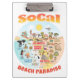 Un dessin spectaculaire de la Californie du Sud - mettant en vedette Los Angeles, Orange County, San Diego. Cette scène lumineuse et charmante a tout - un surfeur pend dix pendant qu'un couple joue dans l'eau, un orque saute, un couple de plage musclé à flex pour impressionner, des animaux de zoo attendent les touristes, un t-rex rugit un défi, le tout sous le soleil de Californie brillant au-dessus de tout.