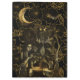 Regardez cette composition gothique de sorcière et de sorcellerie, des éléments dorés sur un arrière - plan noir avec un motif de fleurs de lotus.