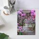 Gardez vos formulaires et papiers en ordre au bureau avec ce porte - bloc acrylique qui présente l'image d'un jardin botanique rempli de belles fleurs roses en rhododendron le long d'un sentier, ainsi qu'une citation inspirante/motivante qui dit : "Suivez vos rêves." L'image est imprimée des deux côtés. Un joli design floral !