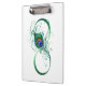 Le symbole de l'infinity with a bright, green, artistic peacock feather on a white background. Tattoo style.
