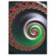 Ce travail comporte un motif fractal tourbillonnant complexe, avec une structure en spirale qui semble s'étendre infiniment vers l'intérieur. Les couleurs primaires sont rouge vif et vert verdoyant, contrastant avec un arrière - plan foncé et profond. Le long du chemin de la spirale, des formes fractales complexes et plus petites se répètent, créant un sentiment de profondeur et de mouvement. Les éléments fractaux rouges ressemblent à des formes organiques, presque comme des fleurs en fleurs ou des feuilles bouclés. Les tons verts se transforment progressivement en blancs argentés plus près du centre, ajoutant un effet lumineux. Dans l'ensemble, l'image évoque un sentiment de complexité infinie et d'énergie dynamique.