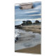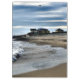 Assis sur la plage le soir, en regardant les nuages de pluie approchant se déplacer à travers le ciel. La marée monte et la petite ville locale de Tywyn se manifeste au loin. Gwynedd Wales UK.