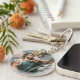 Design présente une reproduction de la peinture de la renaissance de Saint Christopher portant Baby Jesus par Titan. Le texte est encerclé autour de l'image et dit : "Saint Christophe, prie pour nous !" Saint Christopher est le patron des voyageurs.