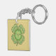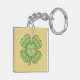 Ce trèfle classique à quatre feuilles chevauche un design de cercle concentrique avec des couches de tissages celtiques dans plusieurs tons de vert avec un peu d'orange pour l'accent.
