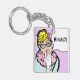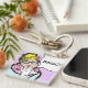 B-I-N-G-O ! BINGO ! Ce porte - clé de bande dessinée inspiré de BINGO est sûr d'apporter un sourire au visage de n'importe quel amant de Bingo. Le design présente une femme délicieusement excentrique avec des cheveux blonds empilés sur la tête avec un arc rose, des lunettes pour oeil de chat, un collier d'impression zébrée rose et blanc et une robe bleue. Une main blanche gorgée repose sur ses lèvres roses comme si elle supprimait un gigot. La bulle de discours près d'elle dit, "BINGO !" La femme et la bulle de la parole sont à la fois sur un lavande et un arrière - plan blanc.