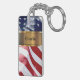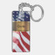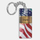 Porte - clés de monogramme avec des noms avec le motif patriotique de drapeau américain conçu pour les hommes ou femmes, garçons ou filles mais travaux spécialement bien pour des combattants. Une conception acrylique bilatérale d'amusement qui vous laisse porter vos clés ou maison de voiture introduit au clavier le style et fait un grand cadeau.