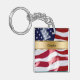 Porte - clés de monogramme avec des noms avec le motif patriotique de drapeau américain conçu pour les hommes ou femmes, garçons ou filles mais travaux spécialement bien pour des combattants. Une conception acrylique bilatérale d'amusement qui vous laisse porter vos clés ou maison de voiture introduit au clavier le style et fait un grand cadeau.