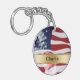 Porte - clés de monogramme avec des noms avec le motif patriotique de drapeau américain conçu pour les hommes ou femmes, garçons ou filles mais travaux spécialement bien pour des combattants. Une conception acrylique bilatérale d'amusement qui vous laisse porter vos clés ou maison de voiture introduit au clavier le style et fait un grand cadeau.