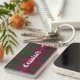 Porte - clé élégant fait dans le motif écossais de plaid de tartan de clan vert et mauve de Crawford. Le texte blanc audacieux de style de Vieux Monde, sur l'avant et le dos, est prêt à personnaliser pour vous-même ou comme grande idée de cadeau.