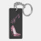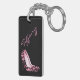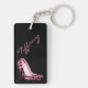 Porte - clé acrylique élégant fait dans un motif rose et noir lunatique de fourrure de jaguar, sur l'avant. Le dos est fait dans le noir, avec une paire de talons roses d'impression de jaguar et de texte fait sur commande rose de manuscrit, indiquée pour que vous personnalisiez.