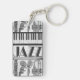 Porte - clé orienté de jazz noir et blanc. Les illustrations originales ont été faites en charbon de bois. Cette conception a une série d'instruments de musique comprenant une clarinette, basse droite, vieux microphone, trompette, piano, et un pilon. Grande idée de cadeau pour le mélomane, le professeur, ou l'étudiant.