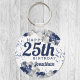 Un porte - clé de 25e anniversaire ravissant de marine et d'argent. Ce design fabuleux est la façon parfaite de souhaiter à quelqu'un un heureux vingt-cinquième anniversaire (ou n'importe quel âge!) Personnalisez avec notre propre nom et message personnalisés. Typographie de couleur bleue et somptueux ballons bleu marine et argent.