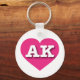 Ce porte - clé est doté d'un coeur rose vif et chaud contenant les lettres coques en haut blanc et gras AK, l'abréviation officielle pour Alaska, la dernière frontière.
