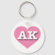 Ce porte - clé présente un coeur rose et cool contenant les lettres coques en gras, blanches et supérieures AK, l'abréviation officielle pour Alaska, la dernière frontière.