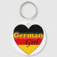 Beau porte-clé avec un coeur représenté par le drapeau allemand. Le texte indique: German girl L'arrière-plan est blanc en couleur. C'est sympa de faire un cadeau ou de vous montrer que vous êtes fier d'être allemand.