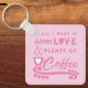 Porte - clé double face, l'idée de cadeau porte-clés pour un amateur de café. Ajoutez des initiales à l'arrière. Amour et beaucoup de café. Rose foncé et pâle avec coeur d'amour.