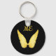 Une paire d'ailes d'ange de couleur fausse or sur une élégante couleur noire. Fille et féminine. Modèle pour Votre monogramme, Lettres de couleur orange.