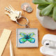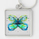 Illustration d'aquarelle en bleu et vert pour papillon blanc. Art original.
