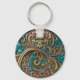 Porte - clé de style occidental en cuir a l'air d'un vrai cuir gravé avec une touche de couleur turquoise mélangé dans. Ce serait un porte - clé unique pour vous, comme un cadeau, ou cette personne spéciale dans votre vie aussi.