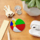 Je photographie une balle de plage rouge, blanc, vert et jaune.