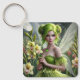 Une belle fée aux cheveux jaune-vert avec ailes blanches portant une jolie robe de chartreuse et un collier de peridot tient un seul gladiolus dans un champ de gladioli. Le texte peut facilement être modifié ou supprimé si vous voulez l'image sans texte.