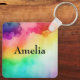 Un porte - clé avec un arrière - plan aquarelle avec les couleurs de l'arc-en-ciel.