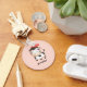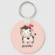 Porte - clé mignonne avec une adorable image d'une vache tachetée en noir et blanc portant un casquette rouge.