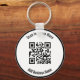 A display image is in the center. You can enter your website URL to create a custom QR code. Above and below the image, there's a line of black text you can edit to show your company name and a custom message (Shown: Scan To Learn More). The keychain has a black border.