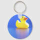 Un mignon coup de canard en caoutchouc sur un lac de bleu.