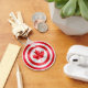 Soyez un héros canadien avec ce modèle de bouclier de style métallique stylisé comme le drapeau du Canada. L'image circulaire en forme de bouclier a une surface rayée pour un look robuste mais vintage.