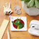 Porte - clé avec illustration de la tête d'un petit dragon volant vert mignon, en cercle rouge, imaginaire mignon / Conte de fées design pour enfants par Maxi Harmony