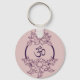 Joli porte - clé violet avec fleurs et om symbole. Mettez-le sur vos clés pour apporter de bonnes vibrations avec vous en mouvement.