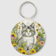 Porte-clés Chat Kitty personnalisé assis en fleurs