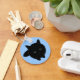 Cette adorable boule de fuzz noir ravira n'importe qui. Des yeux verts vifs vous regardent.
