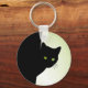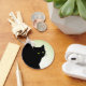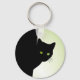 Sly chat noir aux yeux vert émeraude regarde de derrière le mur noir dans une pièce verte.