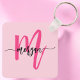 Porte-clés Chaud rose moderne Script Girl Monogramme Nom