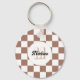Chèque carré mocha brun blanc rétro Monogram porte - clé. Accessoires Cool cadeau rétro à damiers motif carré géométrique. Personnalisez avec votre initiale et votre nom personnalisés.