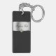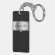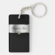 Porte - clé de monogramme avec l'emblème argenté imprimé chic de monogramme que vous pouvez personnaliser avec n'importe quel nom, les initiales, ou le message et le bijou imprimé de diamant bling, avec la couleur noire d'arrière - plan vous pouvez customiser si vous voulez à. Conçu comme cadeau ou cadeau comme porte - clés pour des femmes ou porte - clés pour des filles, dans une conception acrylique bilatérale d'amusement qui vous laisse porter vos clés dans le style.