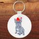 Ce porte - clé de Noël inhabituel présente mon portrait d'un mignon petit chiot français Bulldog, portant un chapeau de Père Noël rouge. Parfait comme un petit cadeau ou remplissage.