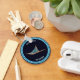 Un chien avec un sac turquoise de traîneau superposé à un arrière - plan étoilé. Vous pouvez ajouter un peu de texte sur le sac de traîneau et plus en haut et en bas.