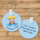 Un porte-clés en forme de cochon heureux lavant une voiture avec une brosse à rouleau et des éclaboussures d'eau. Couleur de fond personnalisable. Texte personnalisé sur les deux côtés.