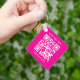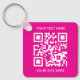 Design promotionnel QR Code rose et blanc chaud. Le style de police et le code QR peuvent être customisés. Créez votre propre porte - clé pour votre petite entreprise.