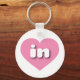 Ce porte - clé est doté d'un coeur rose vif contenant des lettres coques inférieures arrondies et blanches, une abréviation ludique pour Indiana, l'état Hoosier.