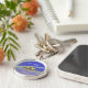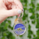 Porte - clé avec mon oeuvre de deux coeurs dorés flottant sur l'eau sous un arc-en-ciel. Le texte dit "50 ans".