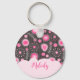 Porte-clés Coeurs gris rose blanc et nom fleuri
