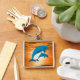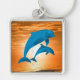 Dauphins au coucher du soleil Grand Carré Porte - clé haut de gamme Impression couleur plein fond Argent Coloured Metal Charm & Ring UV résistant et étanche Ajouter Photos, oeuvres d'art et texte Pas de commande minimum