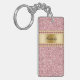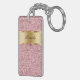 Porte - clé de monogramme avec le joli emblème imprimé de monogramme d'or que vous pouvez personnaliser avec n'importe quel nom, les initiales, ou le bijou de message et rose de diamant bling, avec l'arrière - plan rose imprimé de parties scintillantes vous pouvez employer comme cadeau ou cadeau. Conçu comme porte - clés pour des femmes ou porte - clés pour des filles, dans une conception acrylique bilatérale d'amusement qui vous laisse porter vos clés dans le style.